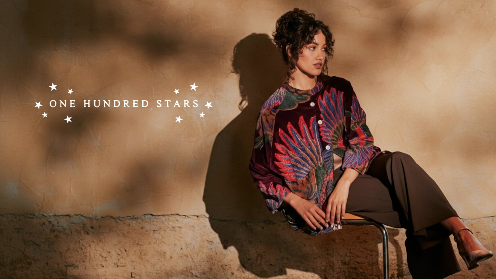 Kukkia, kurkia ja upeita kuoseja! Kauniita, yleismaailmallisia, vastuullisesti tuotettuja vaatteita ja asusteita, jotka käyvät lähes kaikille. Ihastu brittiläisen One Hundred Stars -merkin värikkääseen maailmaan!