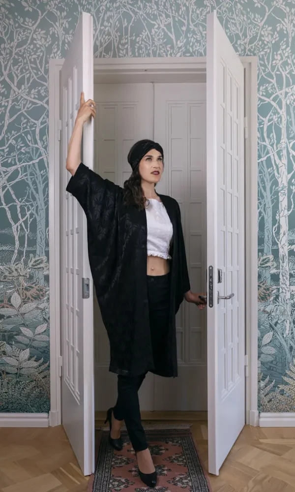 Oma versiomme 1920-luvun ylellisistä ”evening coat” -takeista. Tämä monikäyttöinen takki on kooltaan elegantisti runsas ja kauniisti laskeutuva luoden aikakaudelle tyypillisen siluetin. Käytä fiineimmän juhlamekkosi kanssa tai yhdistele lempifarkkuihin ja teepaitaan – näytät varmasti aivan upealta miten ikinä pukeudutkaan!