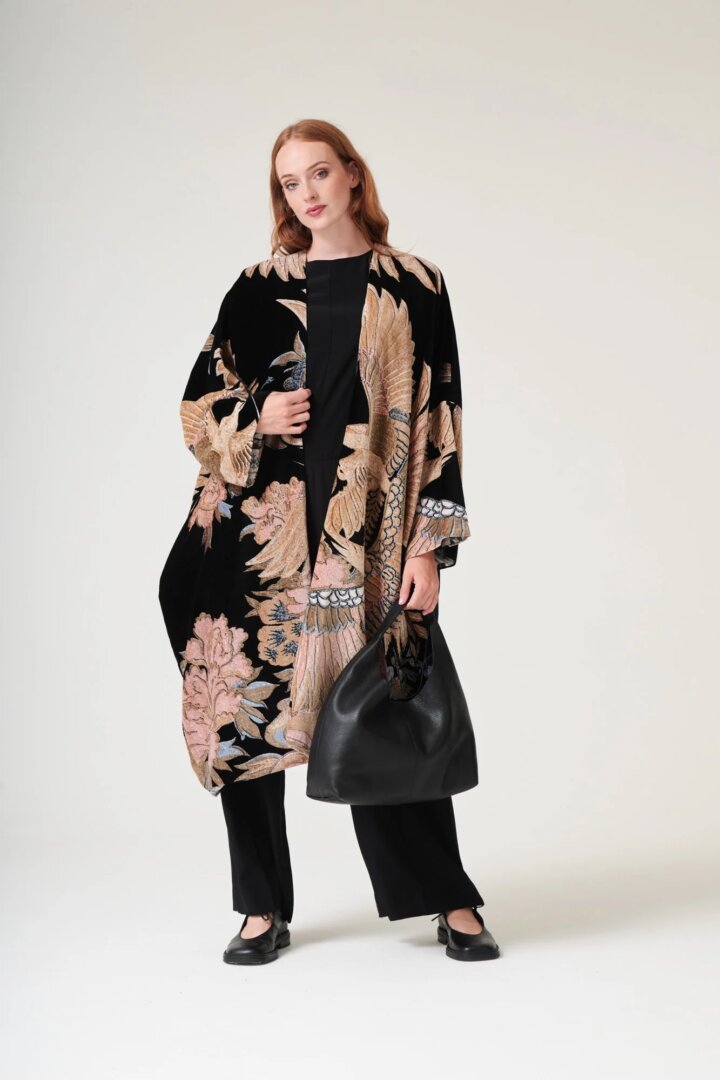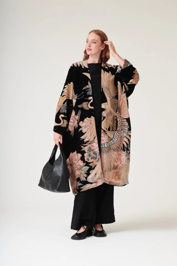 Grande Kimono, Crane Black Velvet, One Hundred Stars