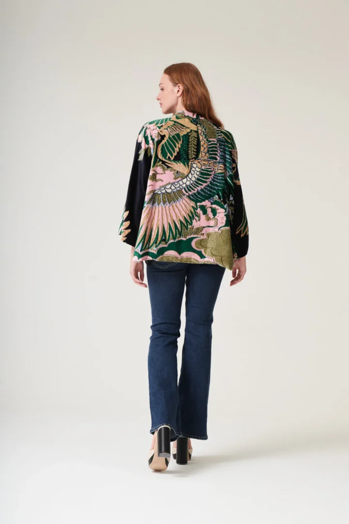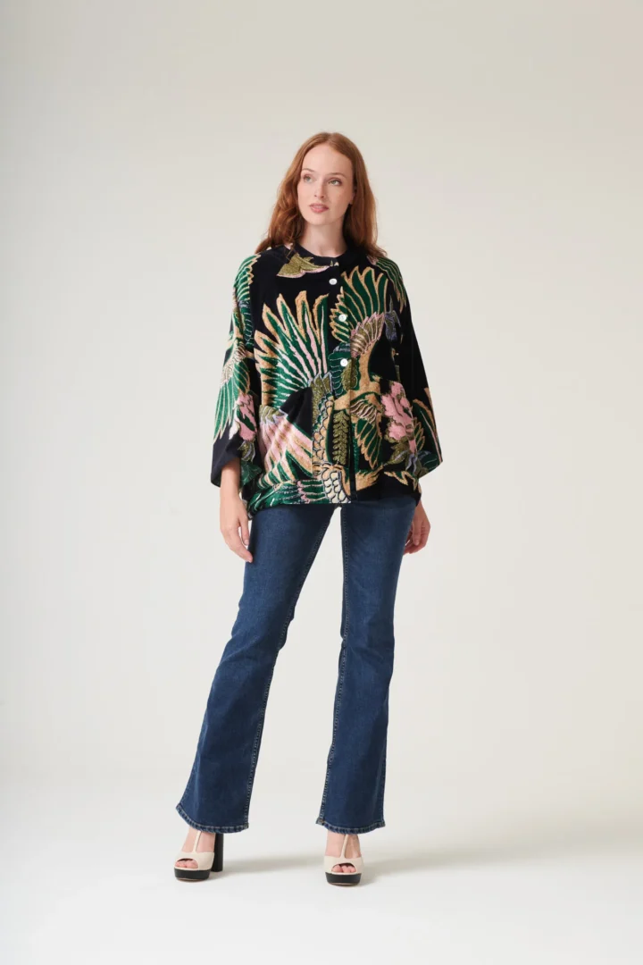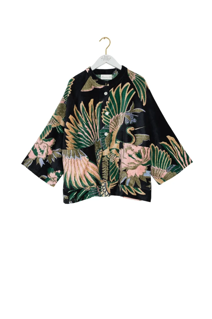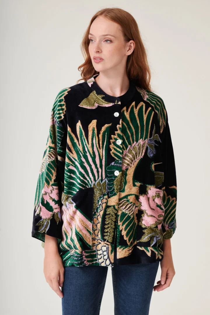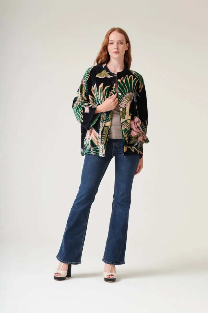 Taivaallisen pehmeä, kuvankaunis Crane Emerald Velvet -samettijakku. Jakussa on mandariinikaulus, edessä taskut, helmiäsnapit ja 3/4-pituiset hihat. Jakku on laskeutuvaa puuvillasamettia, ja siinä on vuori. Arkeen, juhlaan, kesään, talveen – jakku on todella monikäyttöinen.