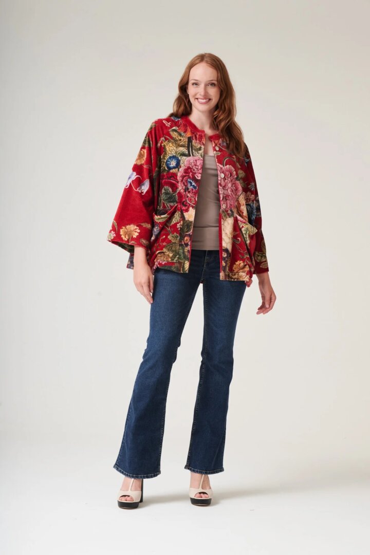 Taivaallisen pehmeä, kuvankaunis Primula Primula Berry Velvet -samettijakku. Jakussa on mandariinikaulus, edessä taskut, helmiäsnapit ja 3/4-pituiset hihat. Jakku on laskeutuvaa puuvillasamettia, ja siinä on vuori. Arkeen, juhlaan, kesään, talveen – jakku on todella monikäyttöinen.